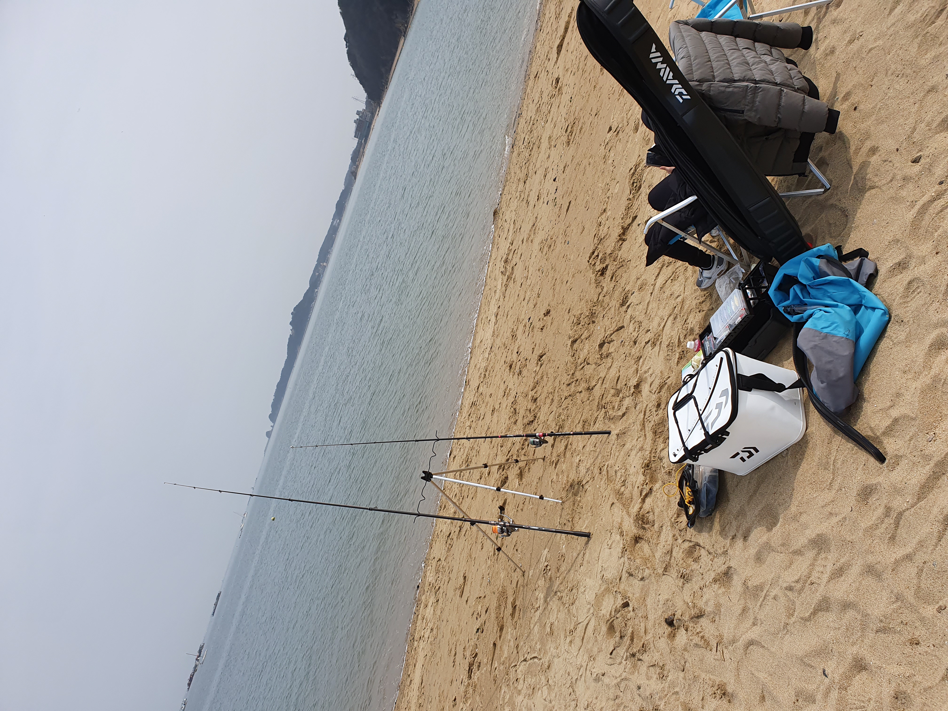 바다낚시는 바위 위나 방파제 위에서만 하는 줄 알았습니다. 바닷가에서도 하는군요~^^