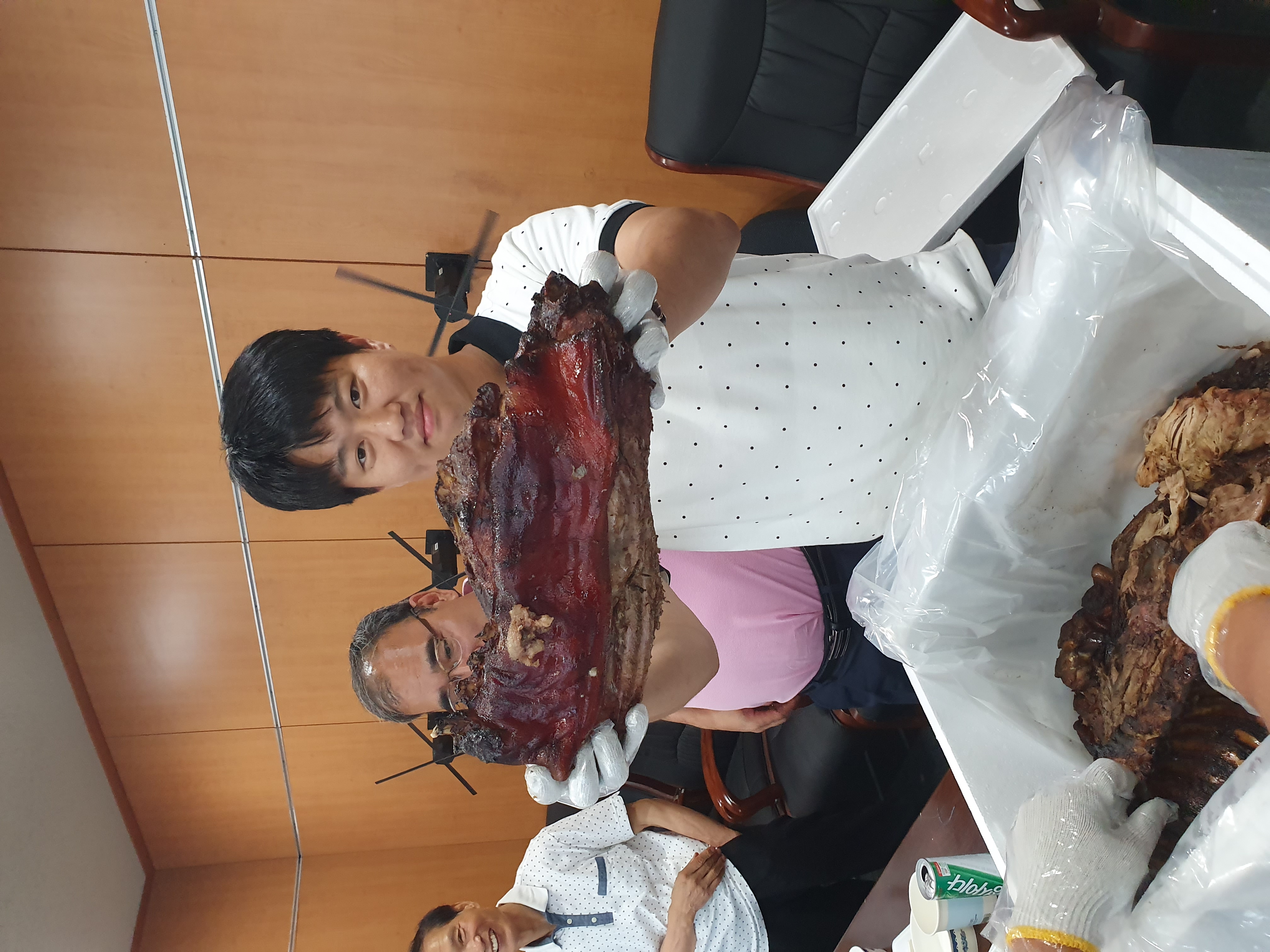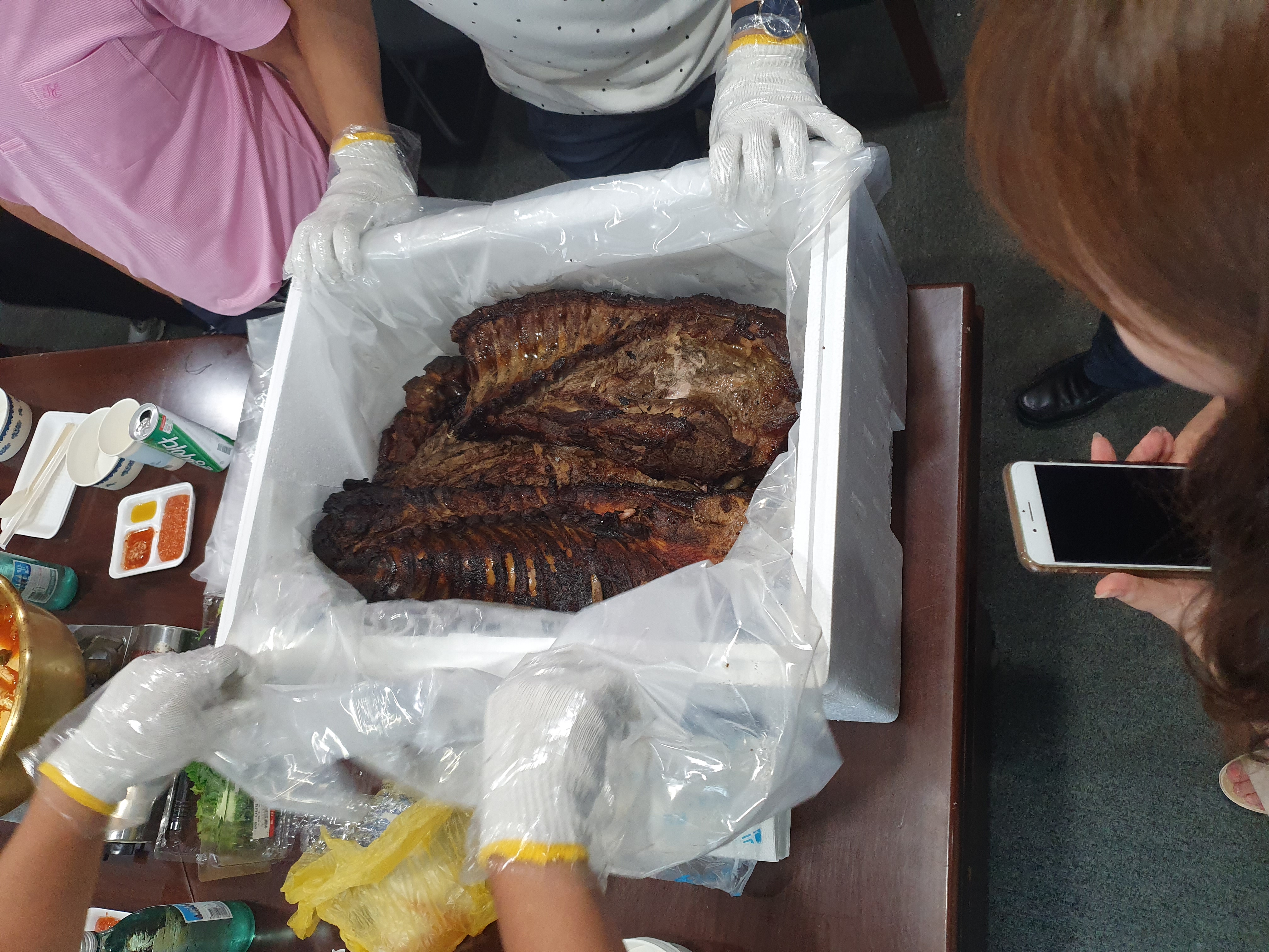고생한 직원들과 함께하려고 식당을 알아보던 중 예전에 진급한 사람들이 샀던 돼지통바베큐가 생각이 나서 함 주문해봤다.