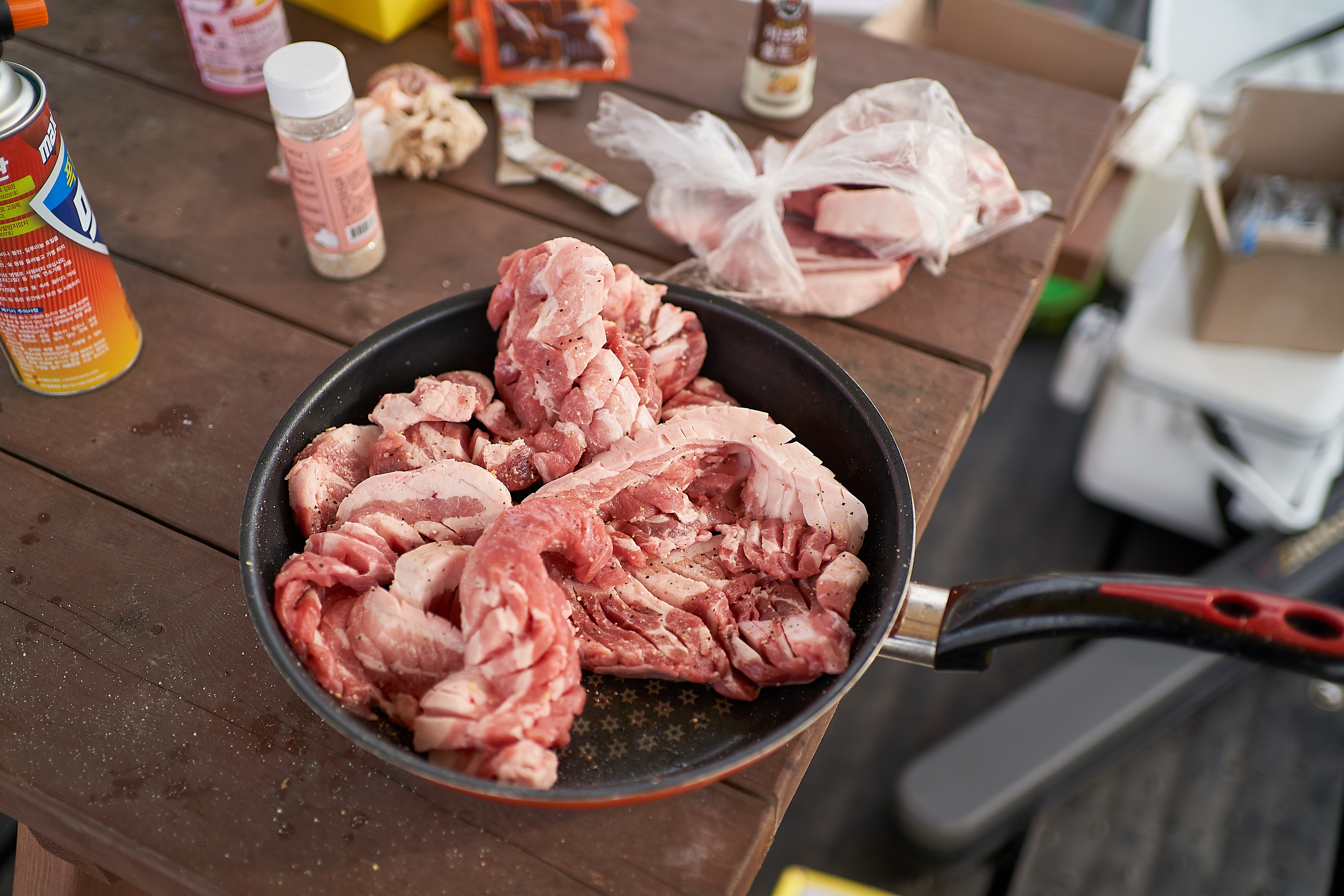 그냥 술이나 먹자....후발대 친구가 와서 먹방시작...낚시와선 돼지고기에 쐬주가 진리...ㅠㅠ