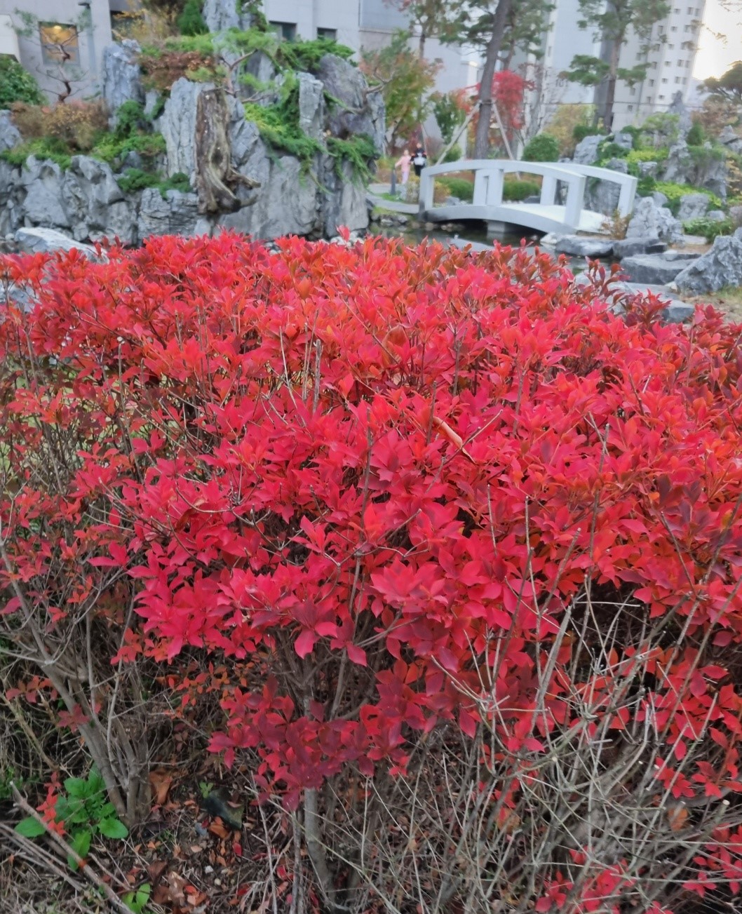 단풍buli713 (58)in #kr • last year 단지 내 곳곳에 마치 꽃이 활짝 핀 것처럼 진한 붉은 단풍이 든 나무가 있다. 나무 이름을 몰라 사진 찍어 확인하니 꽃으로 인식하여 영산홍이라고 나온다. 활짝 핀 영산홍과 비슷하지만 영산홍은 아니다. 이름은 모르겠지만 나뭇잎이 모두 붉은 꽃잎처럼 보여 시선을 확 끄는게 단풍나무 못지 않구나. #krsuccess #buddha