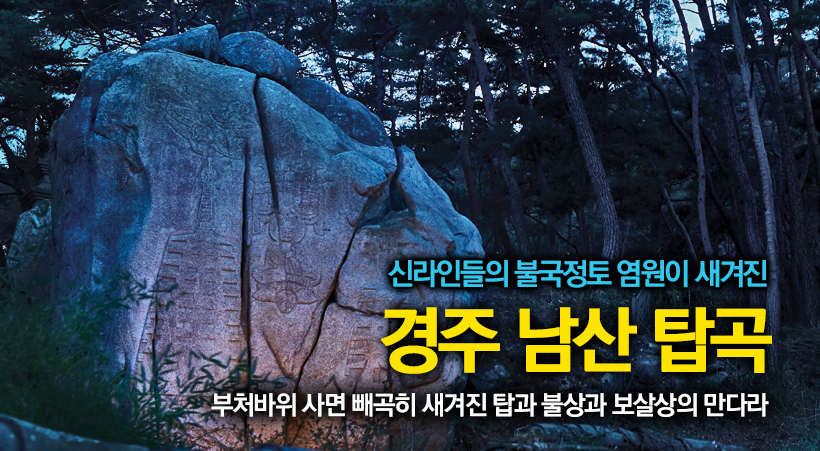 우리 고대문화나 문화의 정체성에 관심을 갖는 이라면 신라문화에 관심을 가질 수밖에 없고 경주를 찾아가기 마련이다. 경주 또한 남산을 제외하고는 경주를 온전히 이해하기 어렵다. 경주 남산은 신라 천년고도 경주의 남쪽에 우뚝 솟아 있다. 높이 468m의 금오산과 494m인 고위산을 합쳐 남산이라 부르는데, 이 두 산의 여러 산줄기가 이어지는 곳에는 40여 계곡이 있다. 기암괴석의 바위산과 소나무 숲이 신비한 분위기를 자아내는 남산에는 신라의 여러 왕릉도 있지만, 수많은 사지寺地와 불상과 탑들이 있어 과거 천년 신라 불교문화의 보고로서 불국토佛國土를 상상해 볼 수 있다.