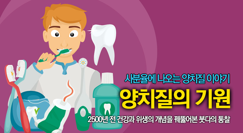 부처님은 연기법을 통해 세상의 이치를 꿰뚫어 본 분이었다. 그분의 눈에는 건강에 있어 가장 중요한 것이 위생적인 습관이었음이 쉽게 보였을 것이다. 그래서 마땅히 수행자라면 이를 닦음으로써 얻을 수 있는 이익과 닦지 않음으로써 생길 허물을 알아야 한다고 가르쳤을 것이다. 지금으로부터 2500년전에 말이다.