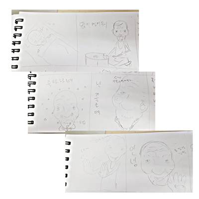 일러스트로 그림을 다시 그리고 포토샵으로 부드럽게 잡아 준 다음 이미지를 하나 하나 그림 저장하여 영상을 완성했습니다..