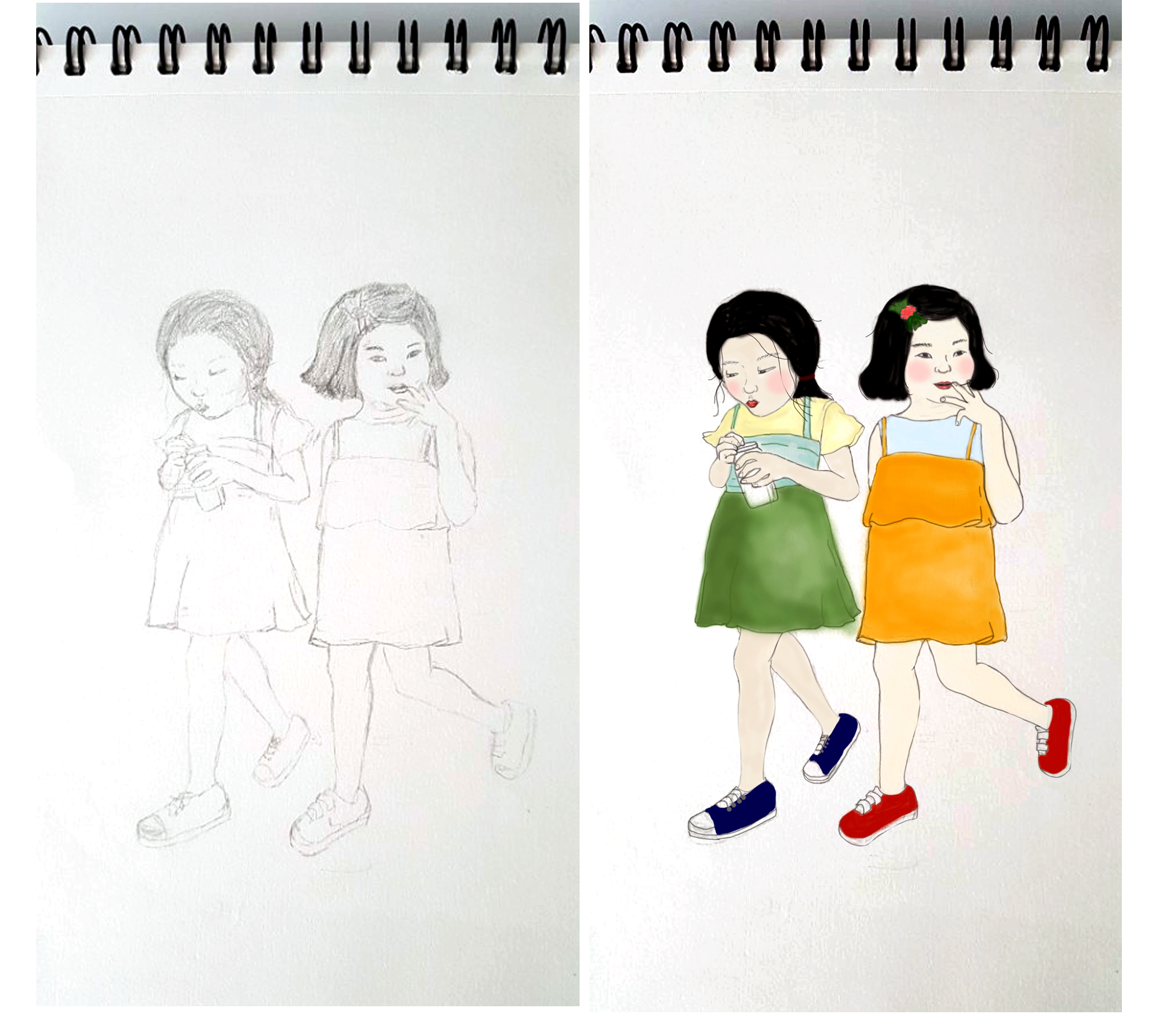 스케치 한 그림과 색을 입힌 그림의 차이가 큰것같아 앞으로는 이렇게 색을 입혀 볼까해요