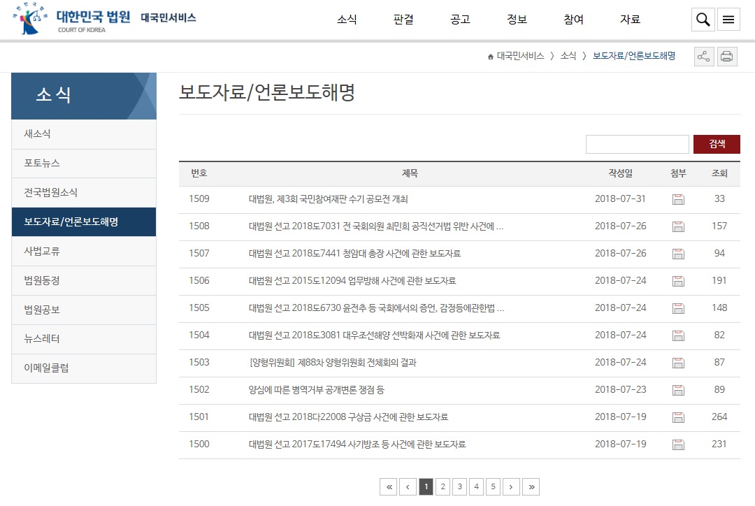 문제는, 시민 모두에게 문건을 공개하는 것이 아니라 언론과 기자들을 대상으로만 그 문건들을 공개했다는 점이죠. 정말로 시민들의 알 권리를 위해서라면 시민 모두가 문건을 열람할 수 있도록 공식적으로 공개해야하지 않을까요? 법원행정처의 사법권 남용이 뜨거운 감자로 떠오른지 몇 달이 지났지만 아직 대법원 홈페이지에는 이슈와 관련한 보도자료나 보도해명이 따로 올라와있지 않은 상태입니다. 모든 소통은 '언론'을 통해서만 하겠다는 대법원의 태도, 왜 사법부가 그동안 '알 권리'의 사각지대로 남아 있는지 보여주는 사례라 할 수 있겠습니다.