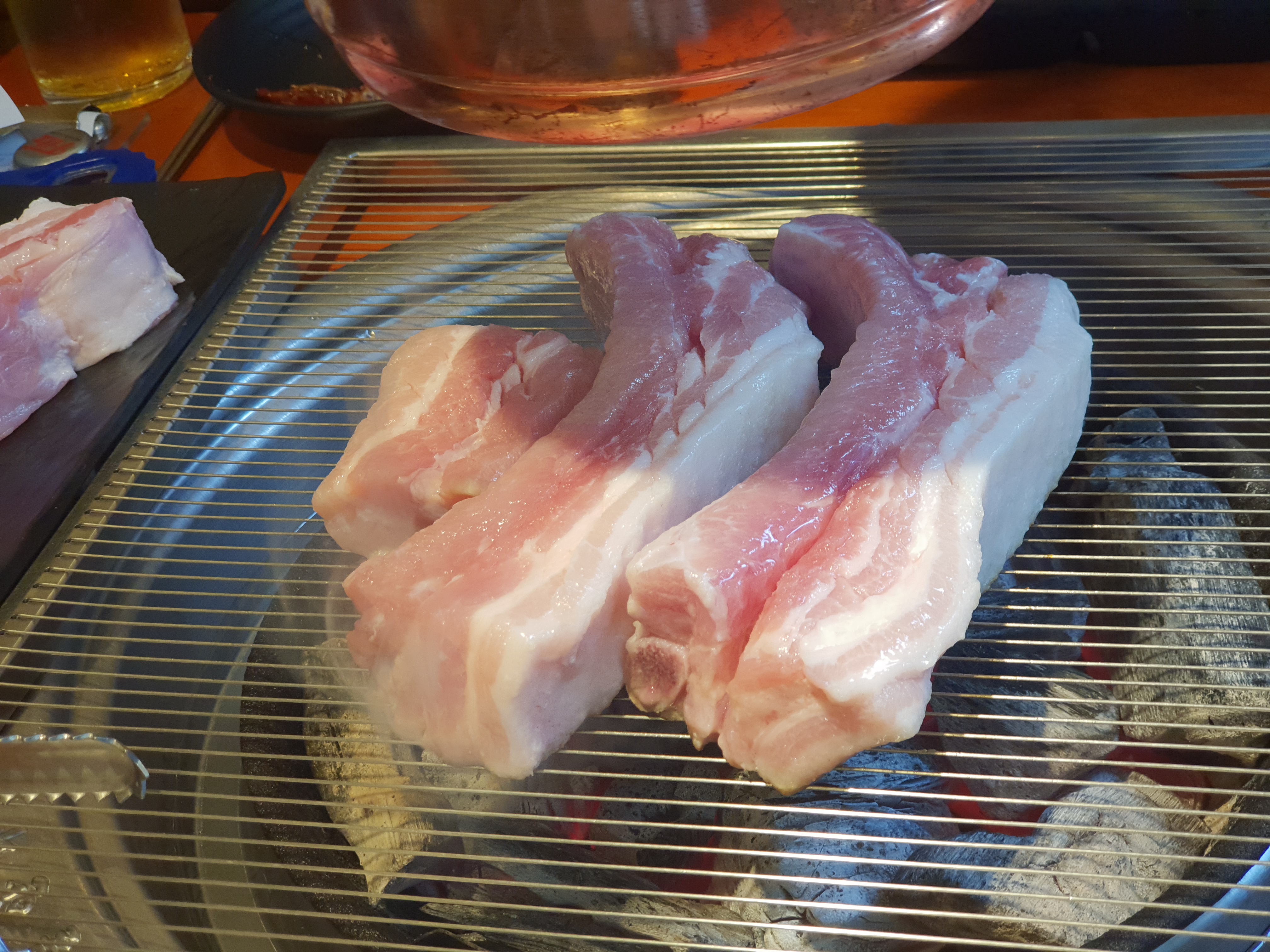 바로 갈비삼겹입니다 특이하게 삼겹에 뼈가있네요