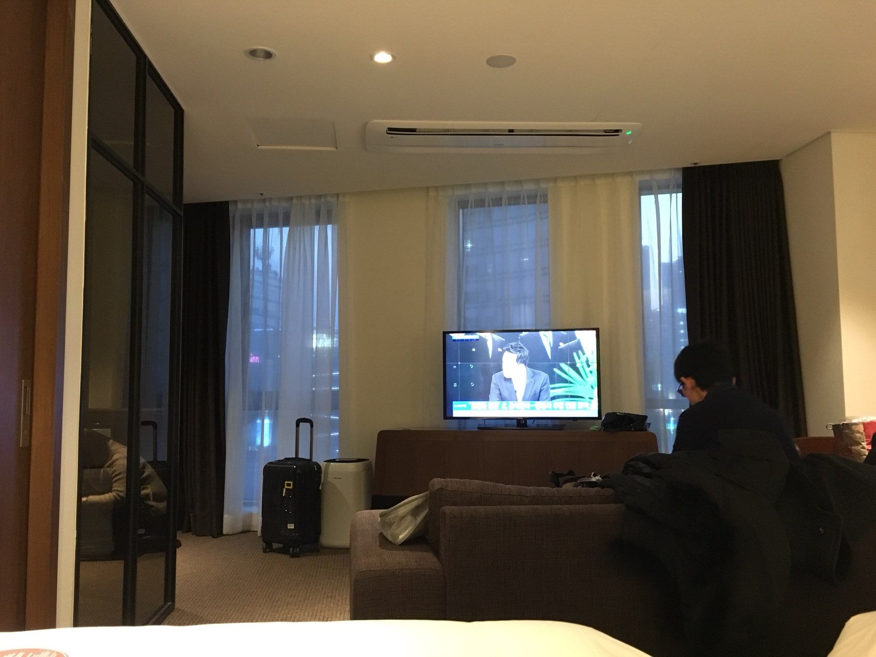 이 방은 이름 그대로 건물 코너에 있어서 외부 뷰를 2면에서 볼 수 있다.