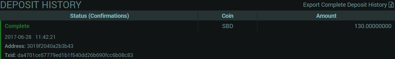 SBD가 Poloniex로 송금이 되었어요 ~ !