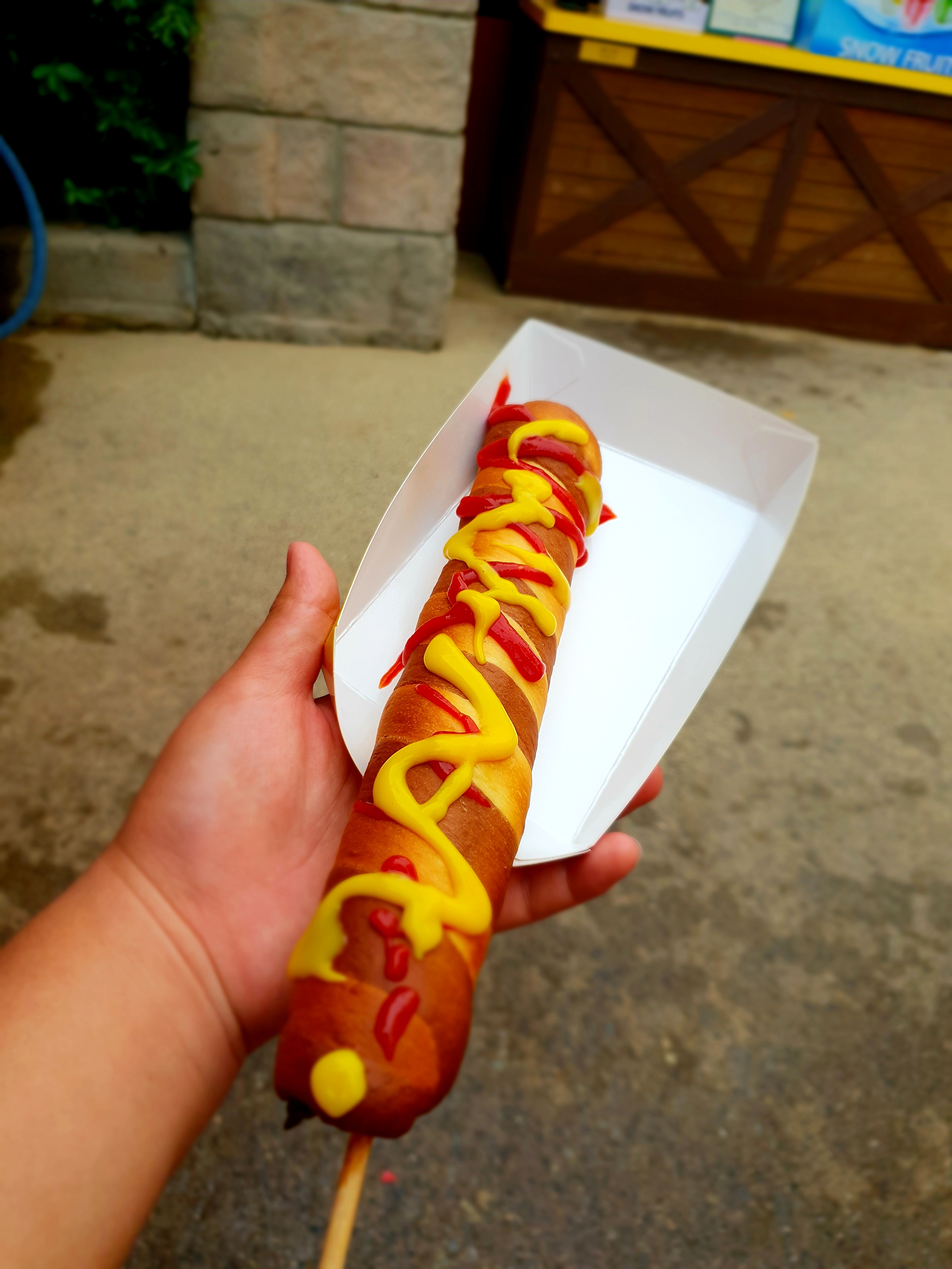 스낵류 중에 가장 비쌌는데 먹어보니까 그 이유를 알겠더라고요. 소세지도 맛있고 겉에 빵도 바삭하고 달달하고 맛이나서 진짜로 마음에 들었어요. 캐첩이나 머스타드를 마음대로 뿌릴 수 있어서 더 좋았어요.