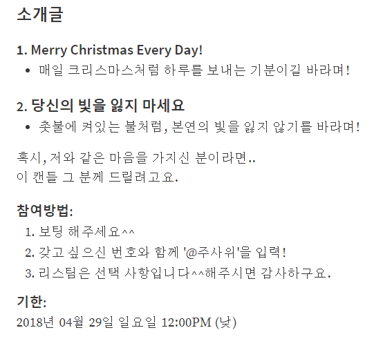 직접 작업하신 양초를 나눔하시는 이벤트 를 진행하셨습니다!