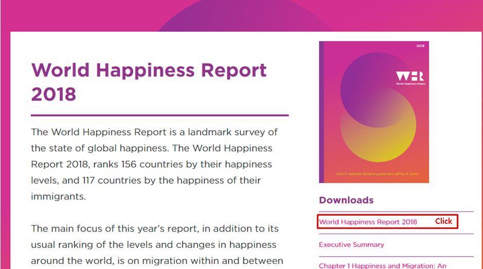 바로 다운로드 : https://s3.amazonaws.com/happiness-report/2018/WHR_web.pdf