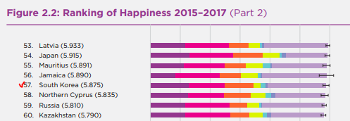 대한민국 행복 지수는 57등 이네요.
