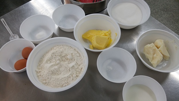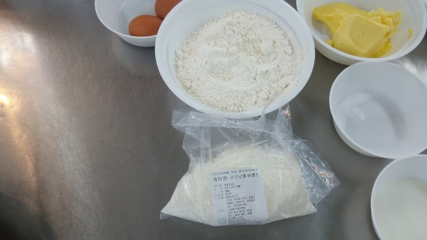 1.냉동쿠키 재료준비 (중력분,버터,쇼트닝,생크림,설탕,소금)