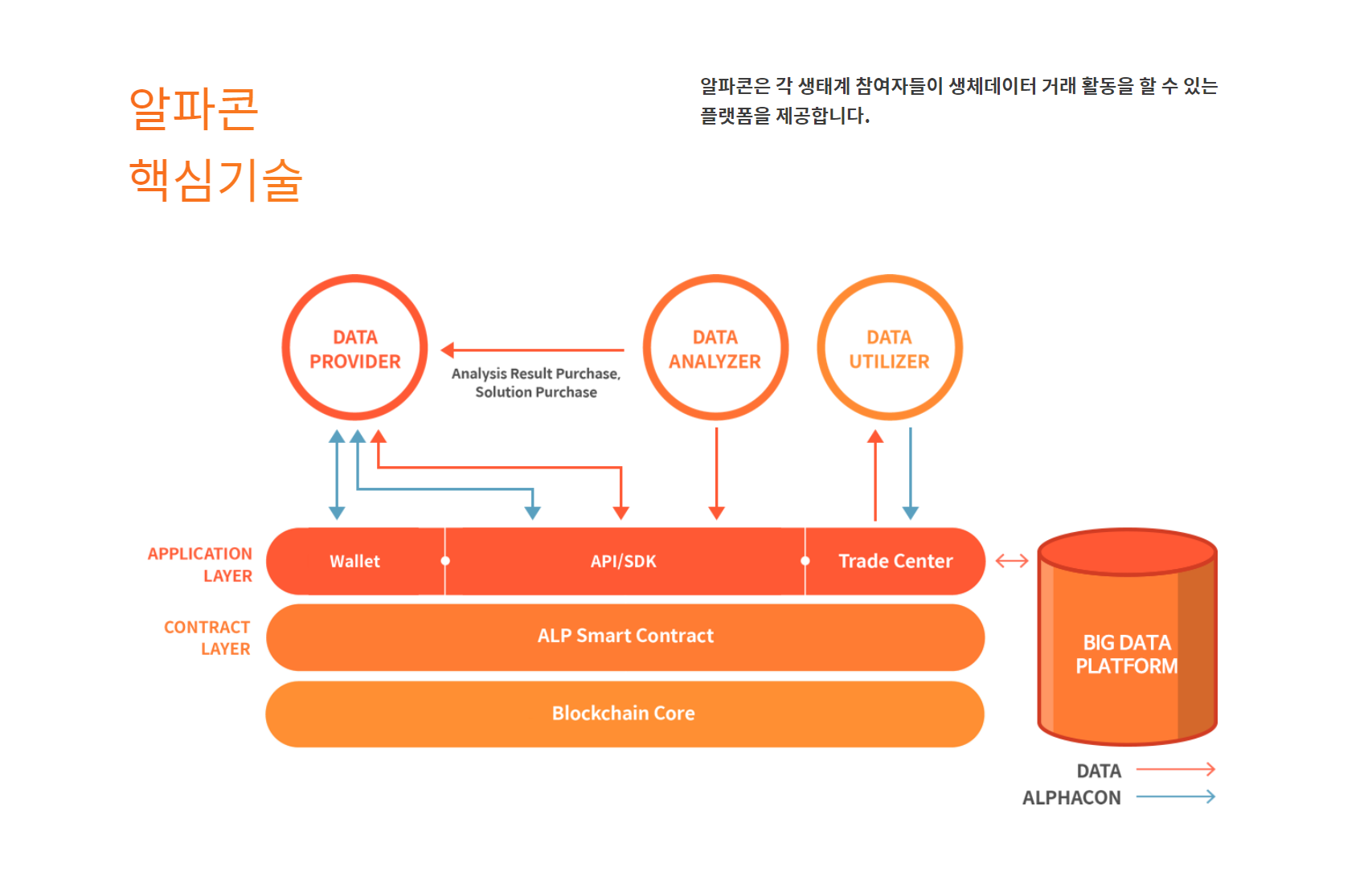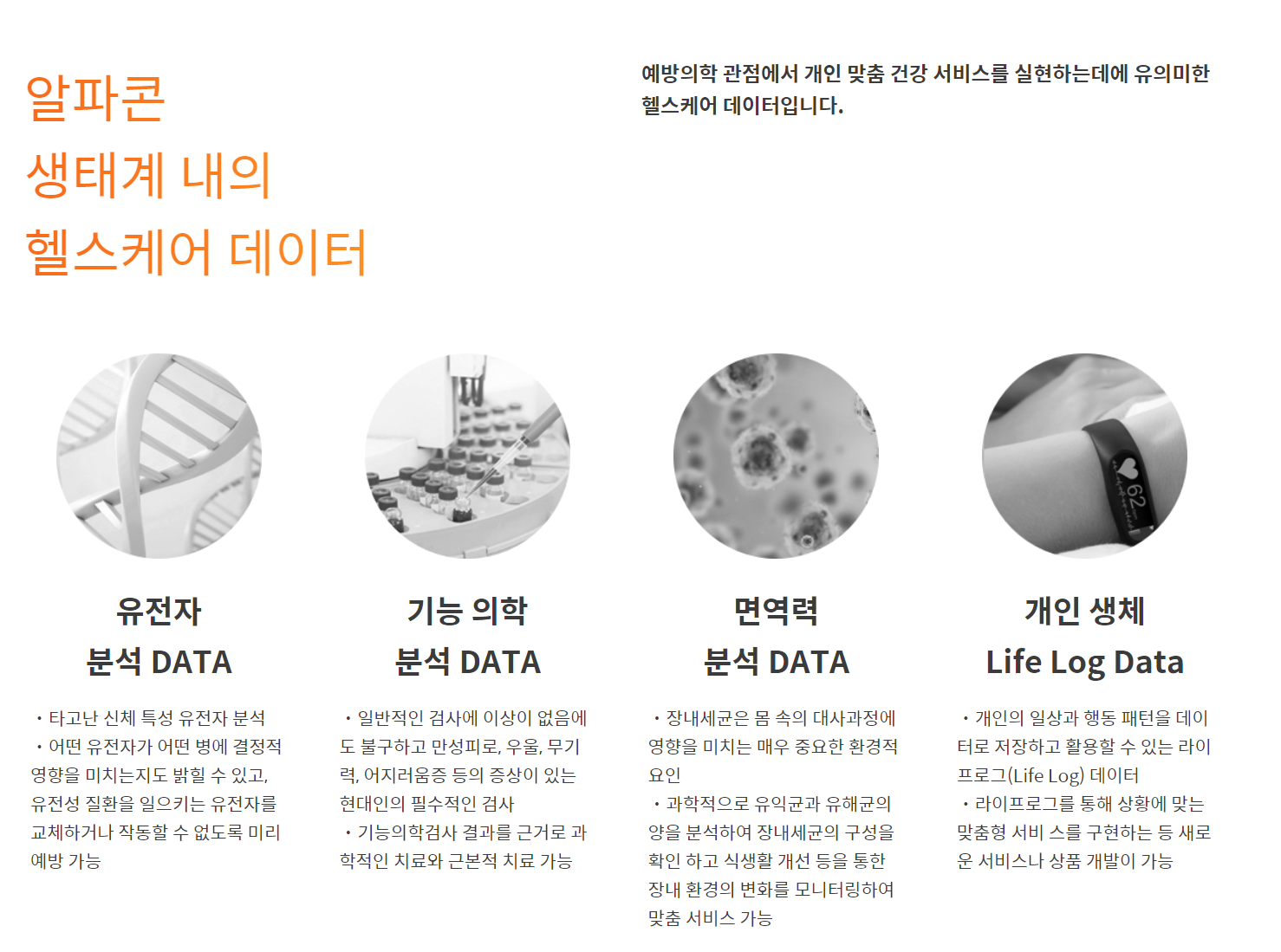 블록체인이 가진 특징과 효과적인 암호화폐의 사용을 통해 헬스케어 데이터 수집 및 분석 그리고 공유되지않는 병원간 개개인의 데이터 공유 그리고 그 정보의 위변조 가능성 문제를 해결할 수 있습니다. 그 기술로 인해 더욱 안전하고 투명하게 개인의 건강 진료 및 모든 병의원 결과 공유할 수 있으며 각 생태계 참여자들이 생체 데이터 거래 활동을 할 수 있는 플랫폼을 통하여 빅데이터 플랫폼을 통해 모든 병의원에서의 건강 진료 개인 생체, 면역력 분석, 기능 의학분석, 유전자 분석까지 한 번에 모든 솔루션을 통합 관리할 수 있습니다.