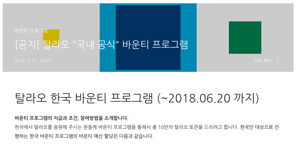탈라오 바운티 프로그램 https://blog.naver.com/talao/221280922201