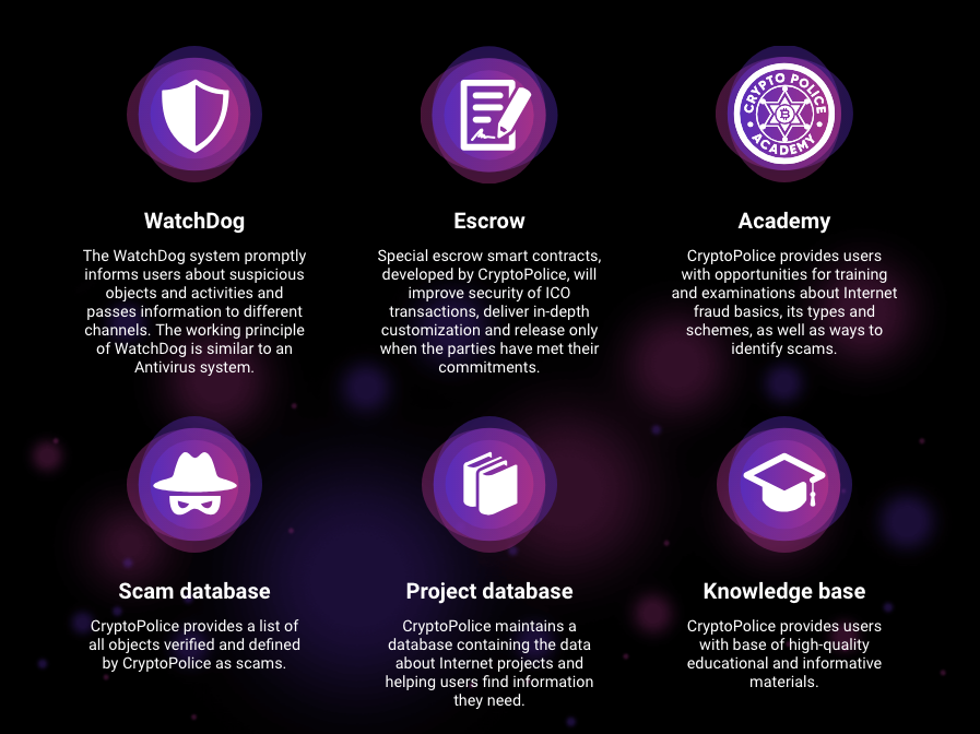 CryptoPolice는 사기를 식별하는 방법뿐만 아니라 인터넷 사기 기본, 유형 및 체계에 대한 교육 및 검사의 기회를 사용자에게 제공합니다.