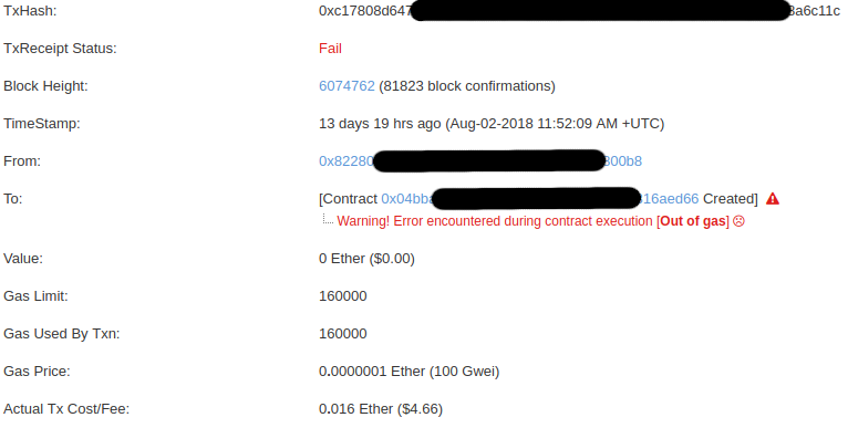 "어라? transaction이 중간에 out of gas를 토하고 종료됐는데 ether가 소비 되었다고요?" 라고 물어 보실분 계실텐데, 맞습니다. 정상적으로 실행되다가 종료되었음으로 gas를 소비합니다. 그래서 gas price와 gas limit의 설정은 아주 중요합니다.