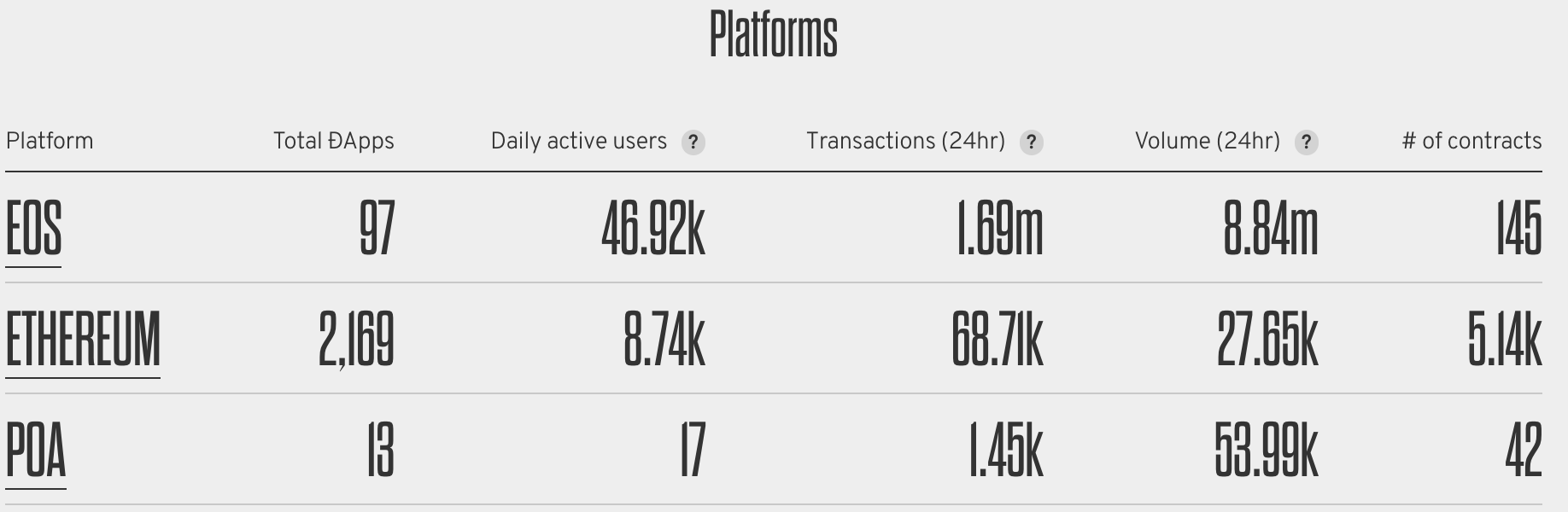 - EOS 관련 댑 : 일간 활성 사용자 : 46,920 / 하루 트랜잭션 : 1,690,000