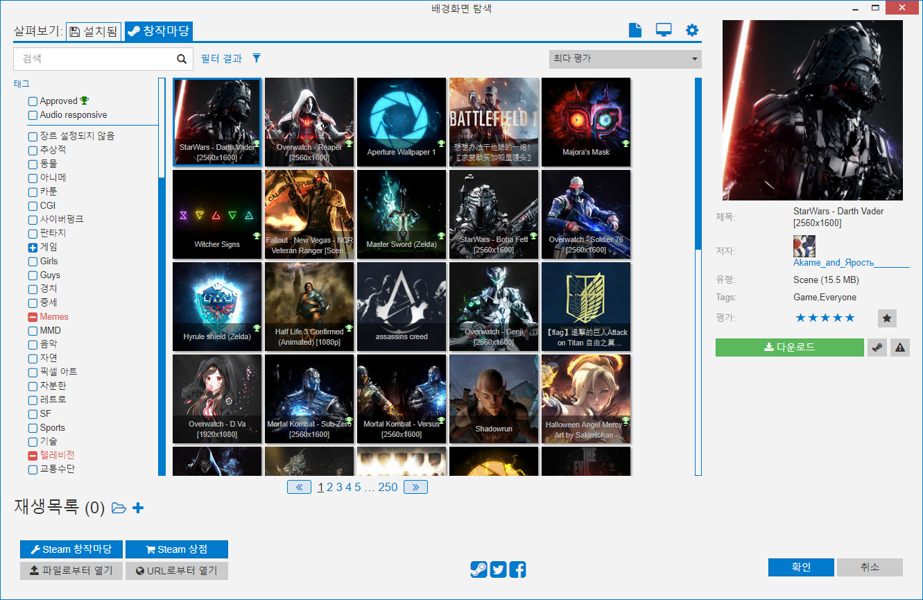 개인적으로 또 좋게 느끼는 것은 스팀 창작마당을 이용하여 사용자들이 직접 배경화면을 만들고 공유한다는 것이다.