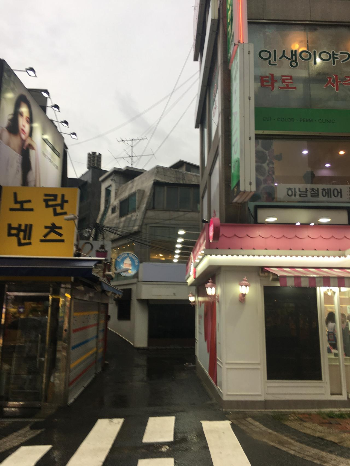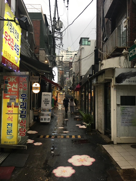 비오는 날 이대 정문 옆 골목길