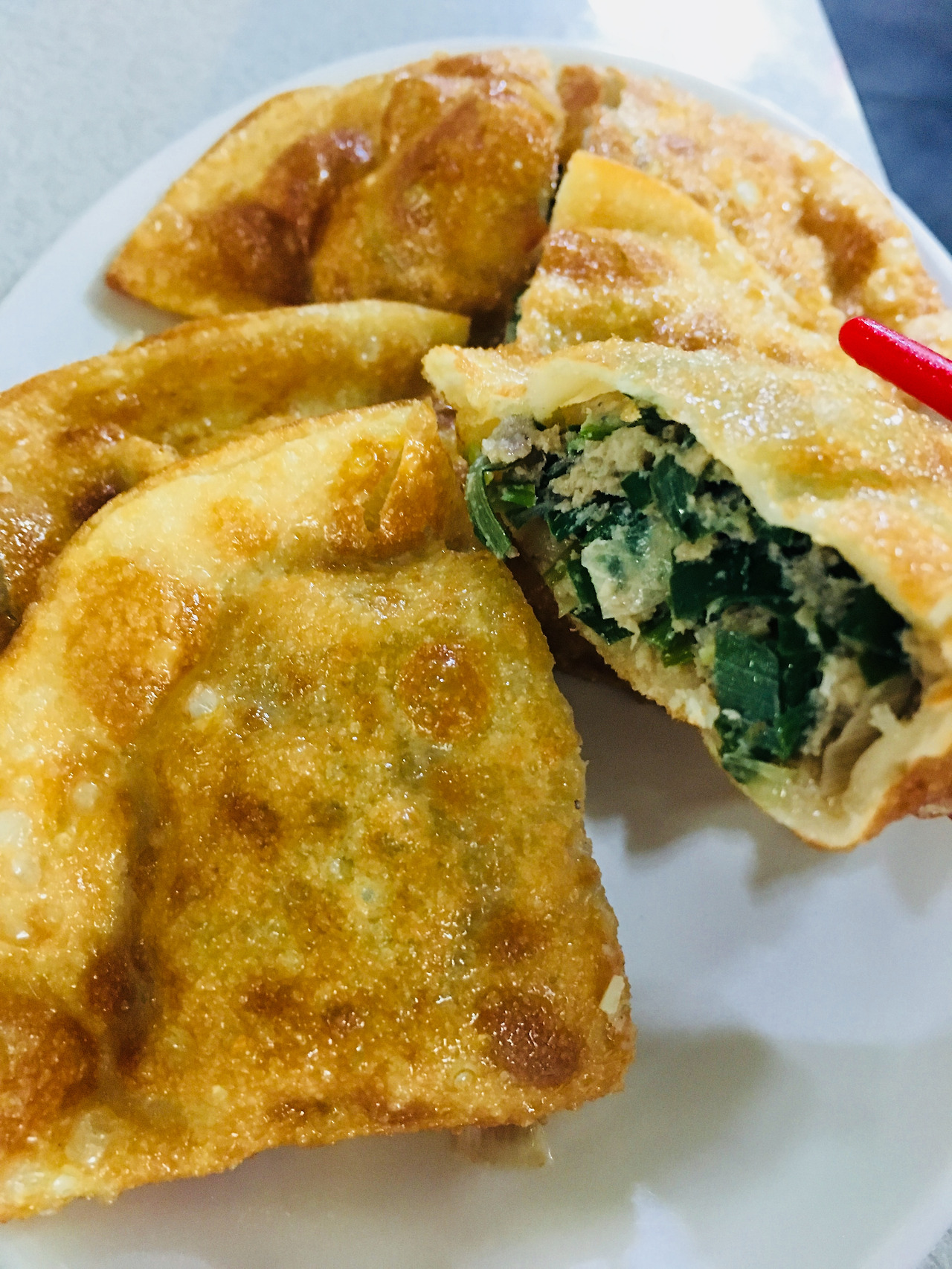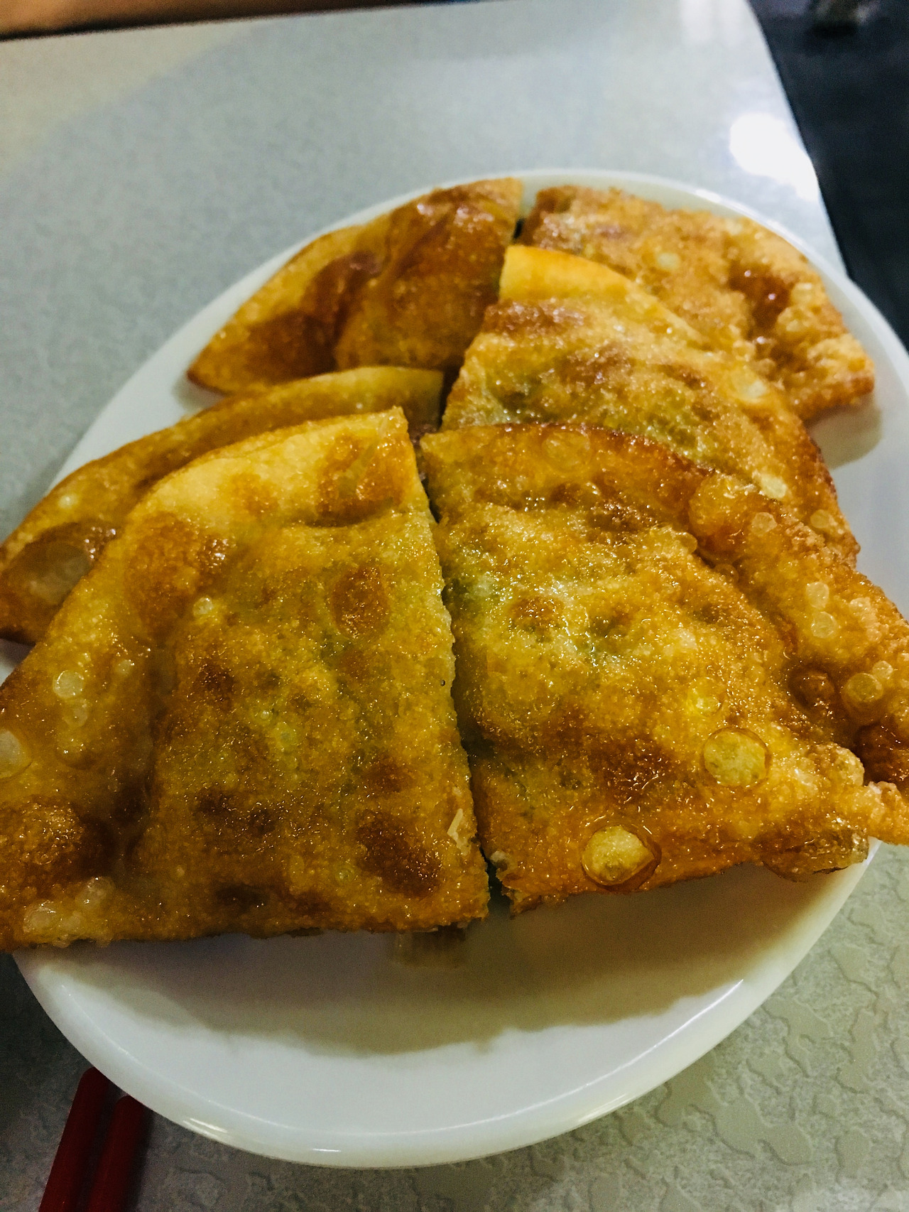 튀김만두를 주문하면 3개가 나온다. 반으로 잘라도 여전히 크다. 하나가 붕어빵 1.7개정도라고 보면 된다.