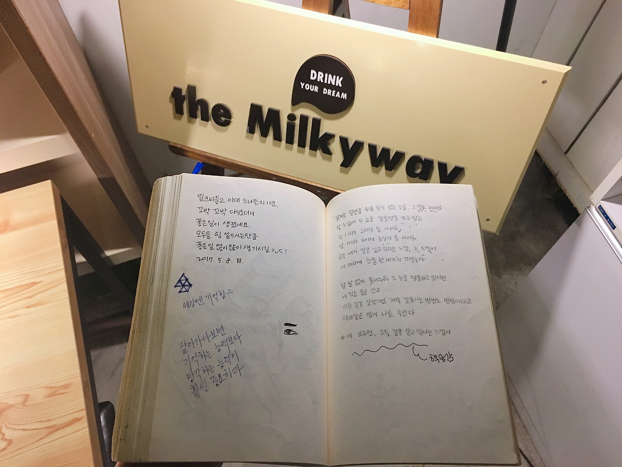 밀키웨이에는 따뜻한 밀크티의 달콤한 냄새, 책 내음, 은은한 스탠다드 재즈와 사람냄새나는 이야기 소리가 있다. 이 곳은 청량하고 산뜻한 느낌을 주는 공간은 아니다. 다만 따뜻하고 포근하다. 만약 단독주택에서 살게 된다면 우리집 지하실은 이렇게 꾸미고 싶은, 그런 공간이다. 이곳에서 학교를 다니고, 이 동네에서의 추억이 많다면 오랜 시간이 지난후 그리울 것만 같은 곳이다. 지나가고 고쳐간 사람들의 흔적과 발자취가 고스란히 남아있기 때문이다.