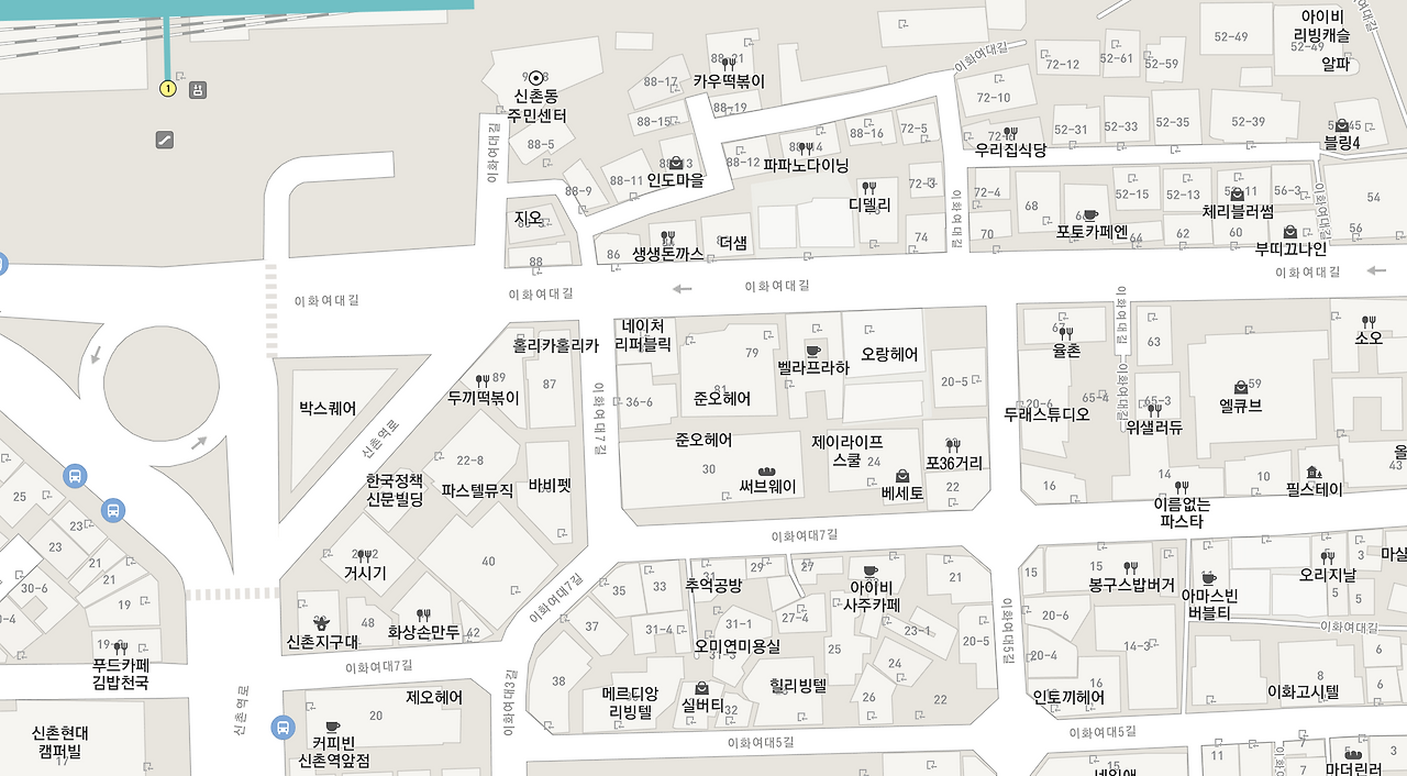 찾아가는 길 - 알면 이대정문, 신촌기차역과 가깝다. 모르면 헤멜 수 있다. 찾아가는 처음이 중요.