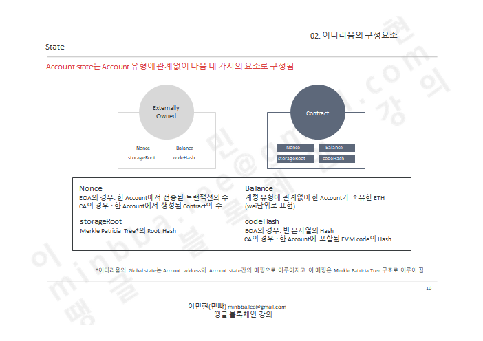 이더리움 코어에 대한 강의 자료가 있어서 해당 강의 영상을 보면서 공부하고, 정리를 해보았습니다.