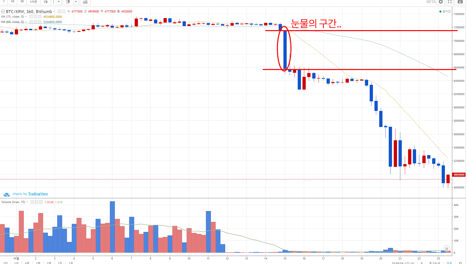 보시다시피 저도 저 구간 얻어 맞았습니다. 버거형들이 움직이는 시간, 우리는 쿨쿨자는 새벽시간에 이런 일이 일어났으니 그럴만도 하죠.. 참 암호화폐 투자자들은 한치도 방심할 수 없네요 ㅠ