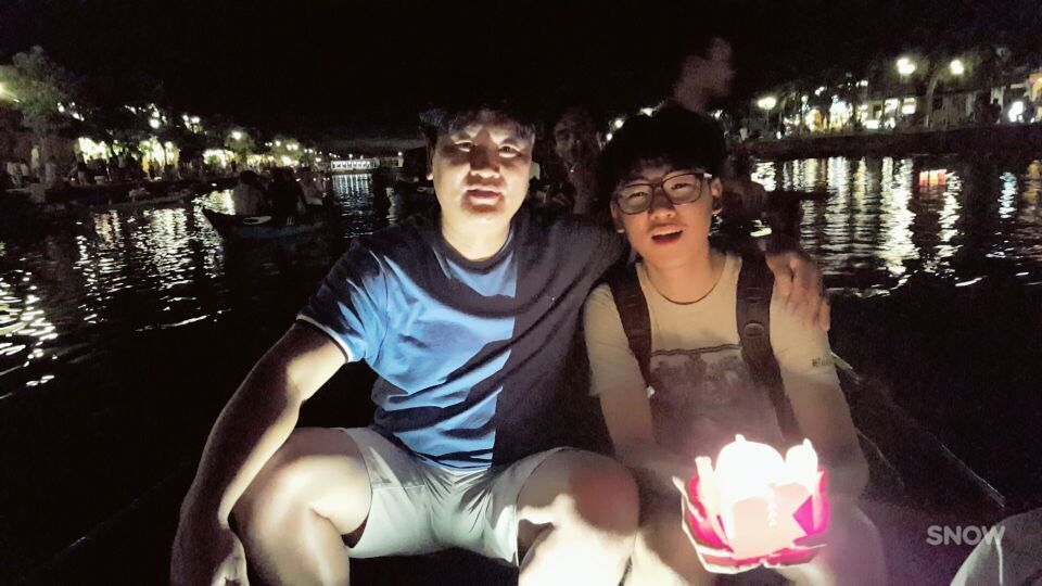 이사진은 저희 아빠와 호이안 올드타운 앞에있는 강에서 찍은 사진입니다! 제가 들고있는 촛불을 강에다가 올려둔뒤 소원을 빌면 이루어진다고 하네요 ㅎㅎ