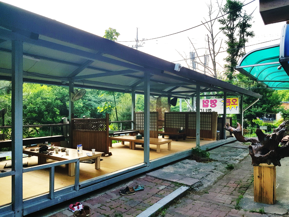 위 사진은 식당 앞인데 이렇게 계곡을 보며 갈비를 뜯을 수 있게 야외 평상이 설치되어 있어서 넘 좋았다