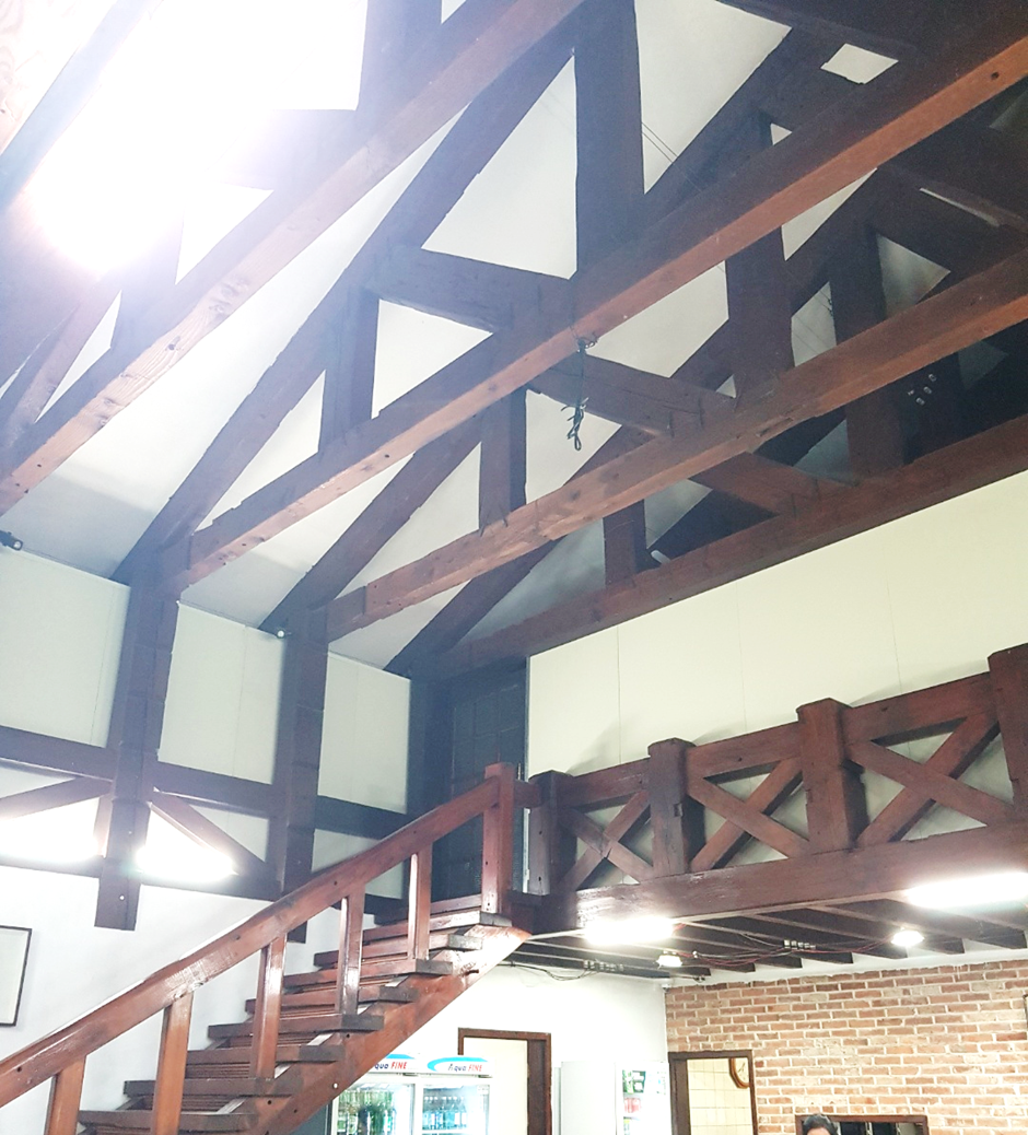 식당 내부는 이렇게 어느 부자의 비밀 여름 산장 같이 층고가 높고 탁 트인 내부였다