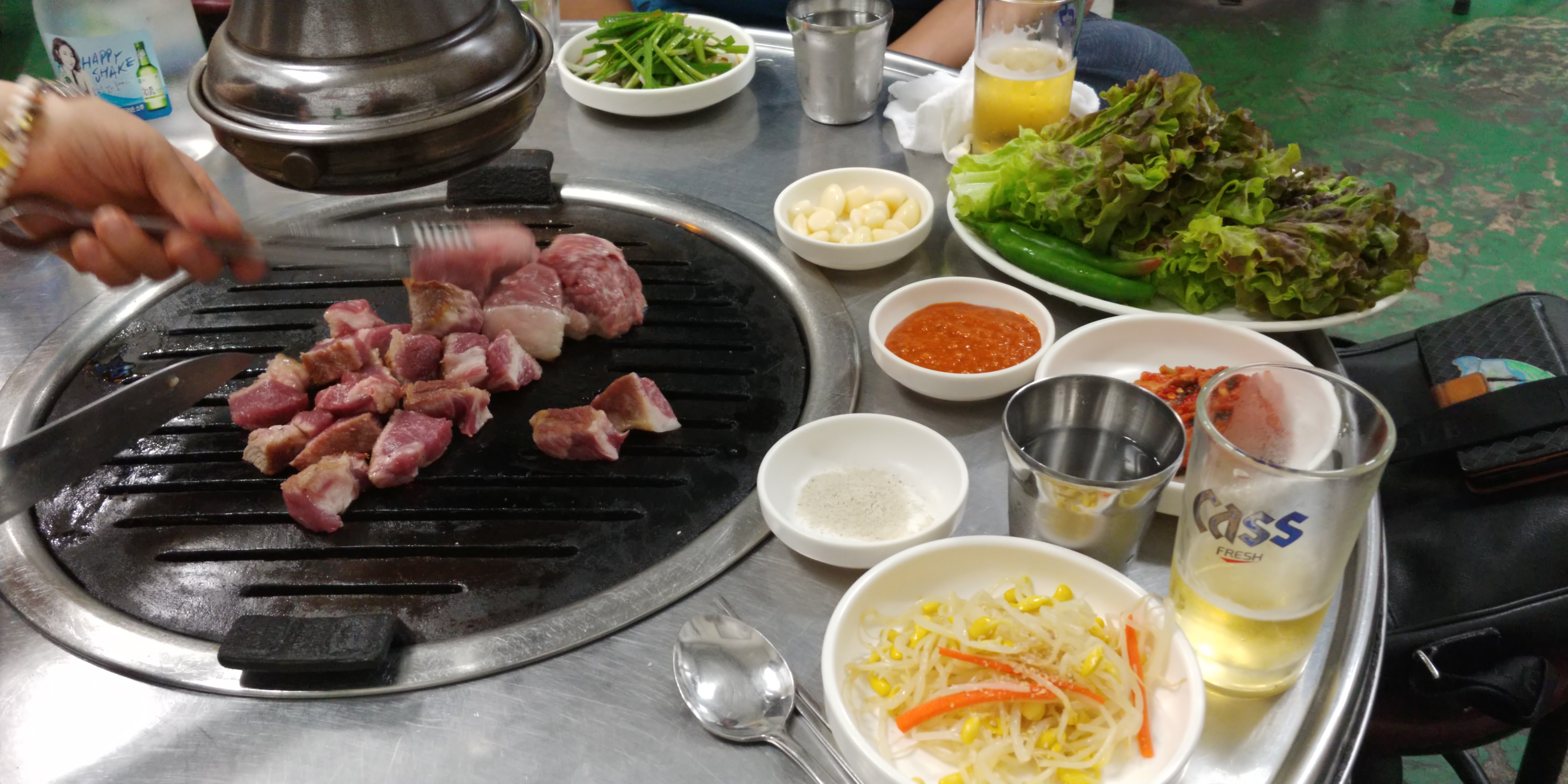 유혹을 참지못하고 삼겹살 1인분 추가했습니다.
