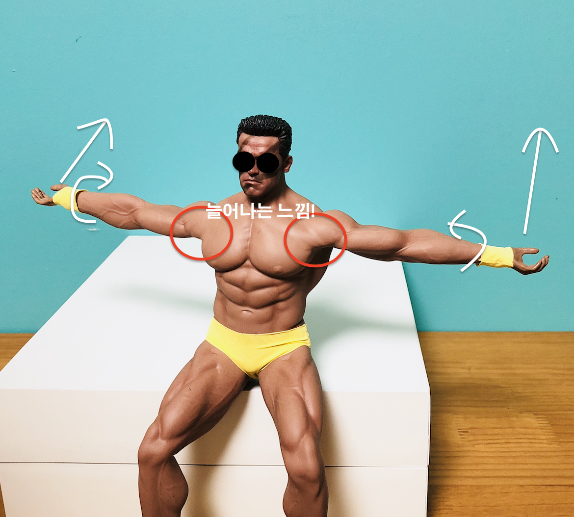 - 바른자세로 앉아 양손을 바깥쪽으로 벌린다