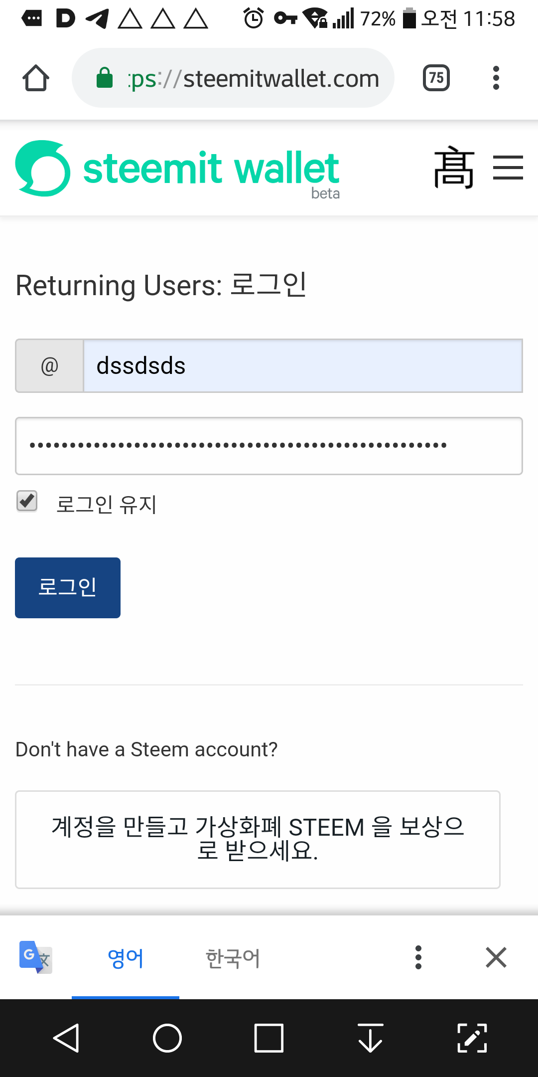 「오랜만의 로그인」