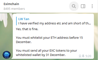 Eximchain 엑심체인 상장 소식 및 스왑등록 마감직전
