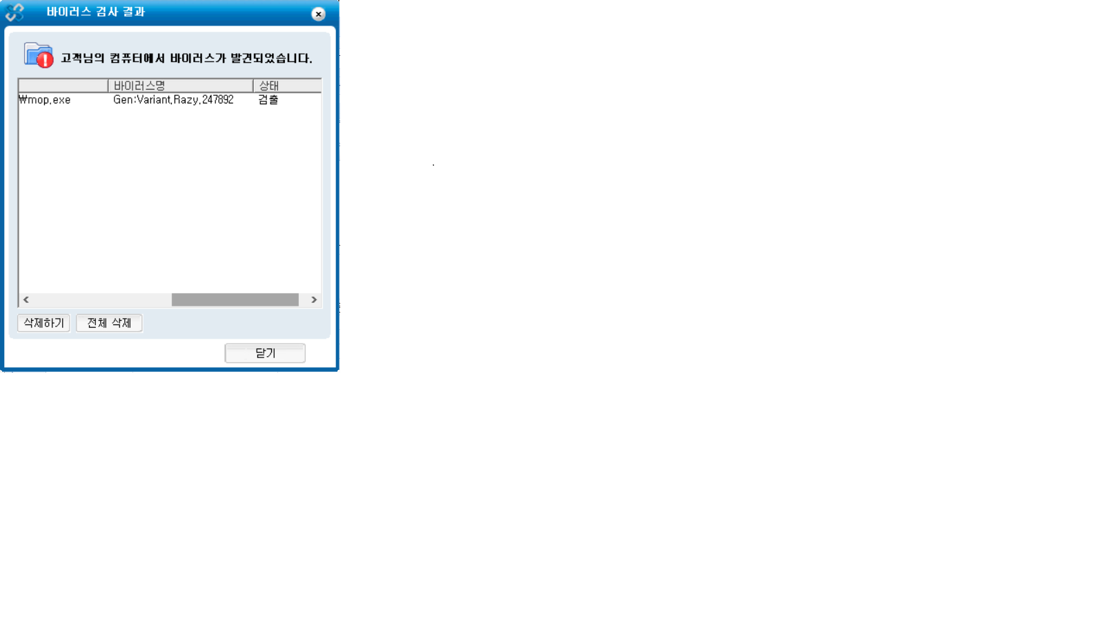 바이러스 검출 경고가 뜨내요.