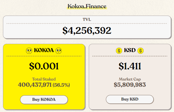 MINT & KOKOAfallrain (67)in #kr • 2 years ago https://coinmarketcap.com/ko/currencies/mint-club/ 지금은 0.007618원. https://app.kokoa.finance KOKOA 가격은 $0.001. KSD는 $1.411. #krsuccess