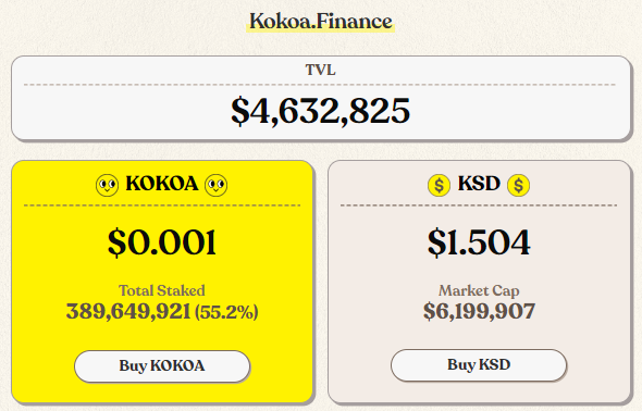KOKOA 가격은 어제 $0.001에서 $0.001로.
