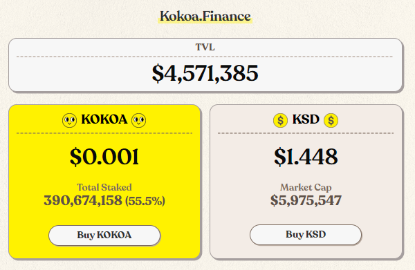 KOKOA 가격은 어제 $0.001에서 $0.001로.