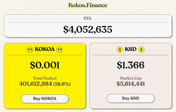 MINT & KOKOAfallrain (67)in #kr • 2 years ago https://coinmarketcap.com/ko/currencies/mint-club/ 지금은 0.006808원. https://app.kokoa.finance KOKOA 가격은 $0.001. KSD는 $1.366. #krsuccess