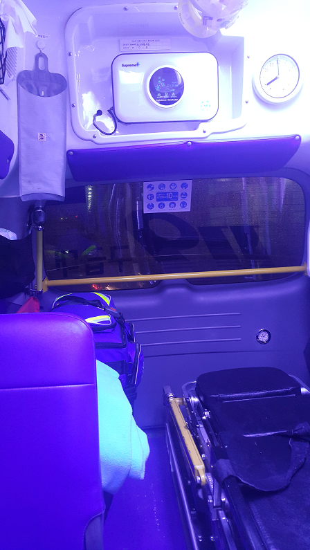 첫 출동은 9시였다. 인근 아파트 단지에서 신고가 되었다. 할머니가 1일전 집안에서 넘어졌는데 그 이후로 허리를 아파한다는 것이다. 신고자는 50대 초반의 친딸이었다. 할머니는 치매 환자이긴 했지만 평소 거동은 가능했다고 한다. 환자는 허리를 아파하여 일어서지 못햇다. 그래서 들것에 실어서 구급카트로 옮기는데 이 할머니 비만이다...... 대략 80kg 정도 되어 보인다. ㅠㅠ 원래 이번 구급차 동승 실습에서 나의 역할은 견학이라 그냥 옆에서 지켜보려 했는데 이 할머니는 구급대원 둘이서 옮기기에는 많이 무거워 보여 도와드렸다. 구급대원과 가족들과 함께 영차영차 구급카트로 옮겼다. 비만인 사람을 비하하는 것은 아니지만 환자가 되면 체중도 가벼워야 주변 사람들에게 폐를 덜 끼친다.