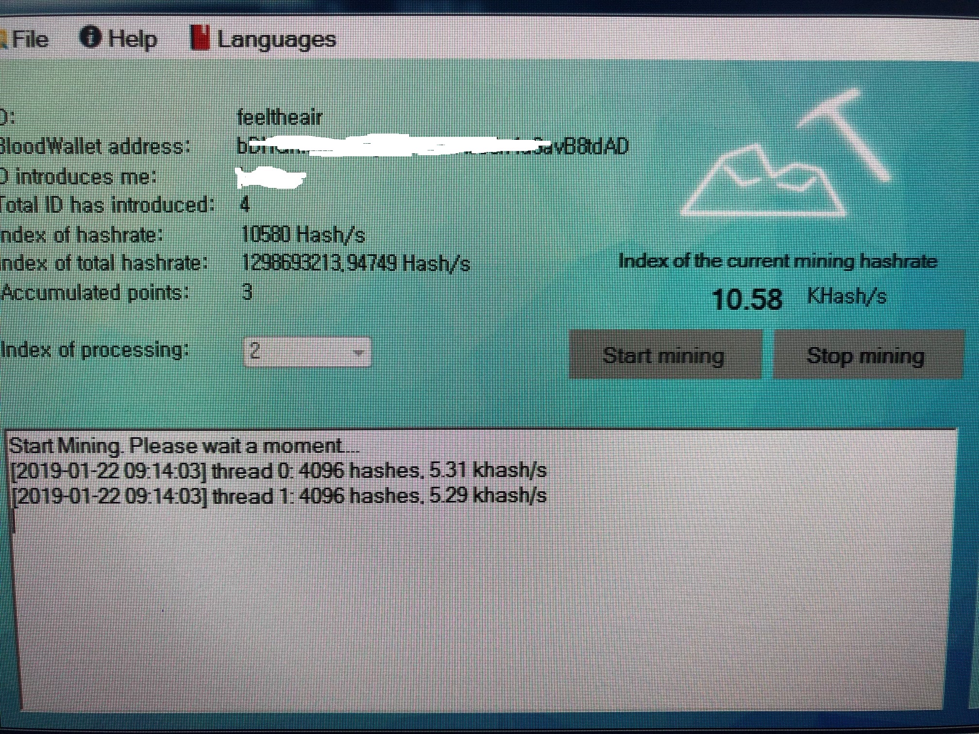 마이닝 툴 다운로드 링크 : https://wallet.blood.land/#/mining/download