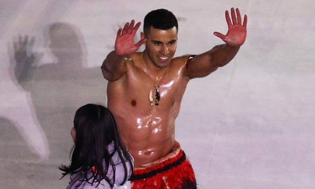- 웃통 벗고 나온 통가 선수