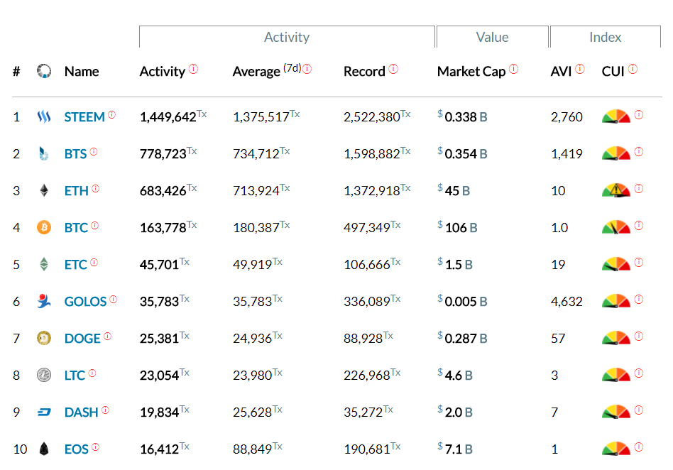 늘 Blocktivity.info에서 1위를 굳건하게 지키며 2,3위인 BTS, ETH보다 2배 가량 높은 트랜잭션을 보여주는 STEEM의 저력 또한 잊지 말아야할 것입니다!!