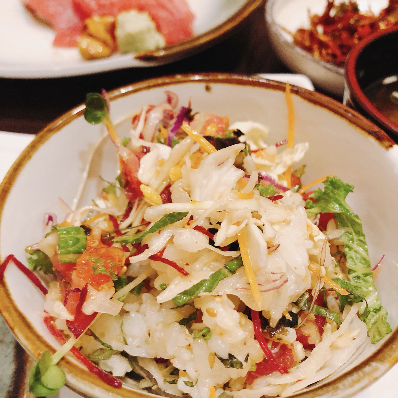 초밥은 2인분이었건만. 셋이 나눠먹어도 양이 많아 배불렀다. 함께 주문한 회덮밥 하나는 셋이 나눠 먹었다.