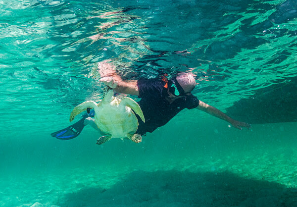 2019 년 셰인 그로스, 바하마 엘루 테라에서 관광객을 간식으로 착각 한 녹색 바다 거북