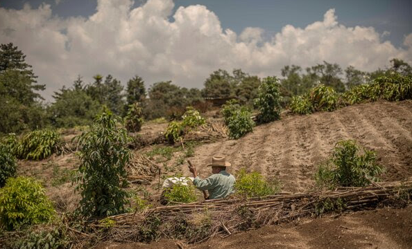 과테말라 Concepción Chiquirichapa의 감자 밭에서 일하는 농부