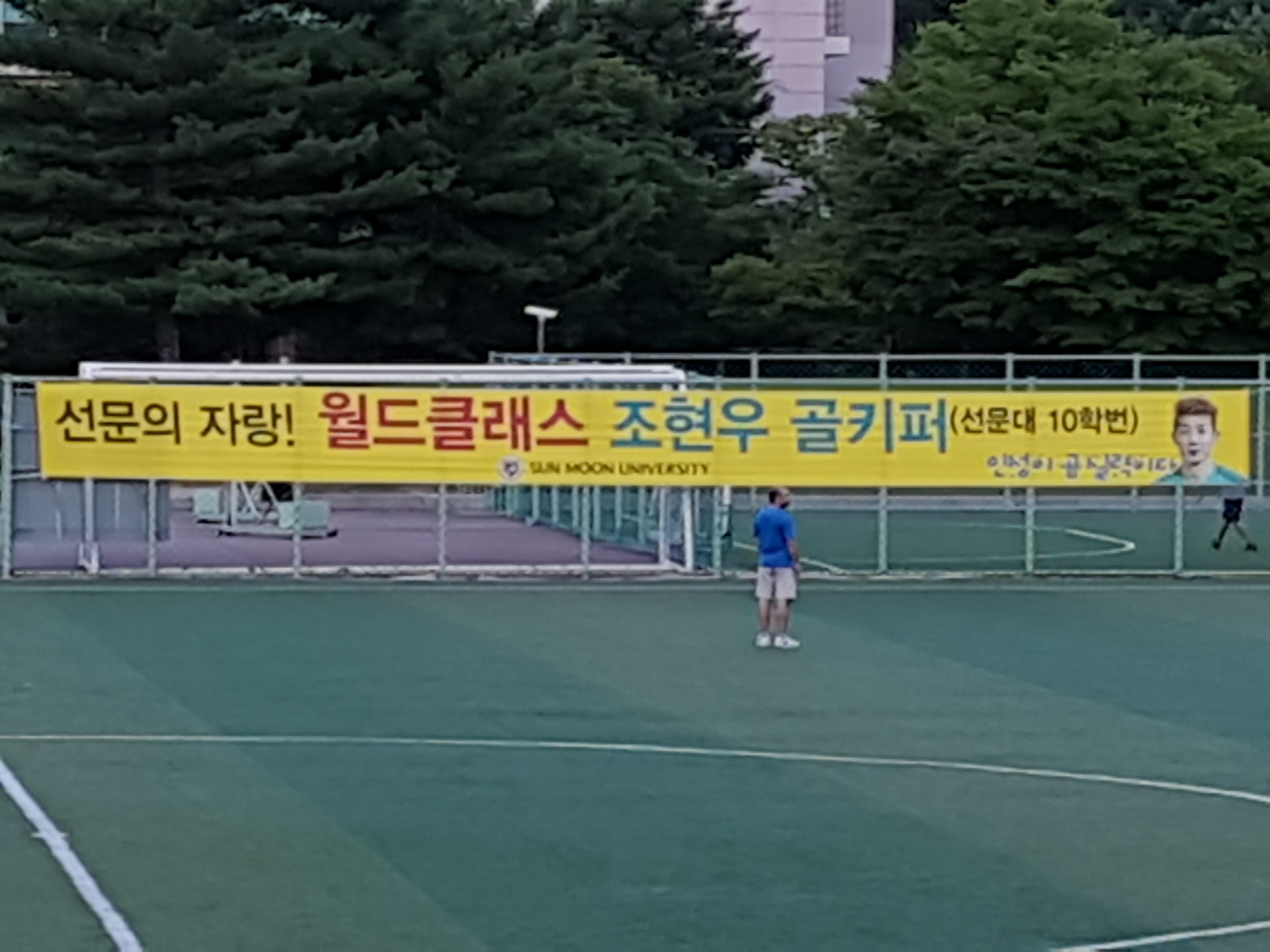 오늘은 선문대 놀러 갔더니 축구장에 큼지막한 현수막이 걸려 있습니다.