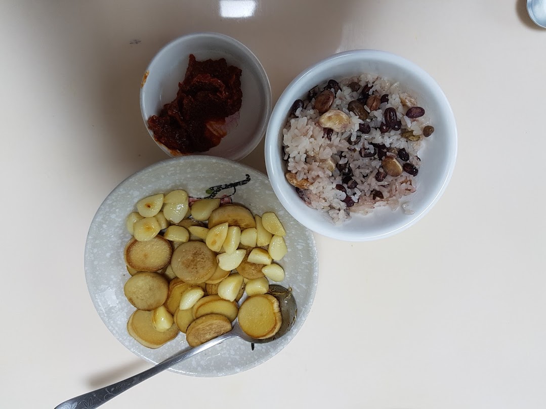 오늘 아침 식단입니다.gg1971 (46)in #kr • 8 years ago 아침부터 요란한 냄새가 나길래 뭐 맛있는 거 해주나 기대하고 식탁에 앉았습니다. 식탁에는 마늘과 버섯을 후라이팬에 버터 두르고 볶은 것이 있었습니다. "아! 삼겹살이라고 구웠는가 보구나!" 하고 기다렸는데 더이상 아무것도 가져오지 않습니다. 그냥 마늘과 버섯, 쌈장, 밥 이렇게 끝입니다. 그래도 밥이 맛있어 다 먹긴 했지만 삼겹살이 없어 조금 아쉬웠습니다. 그런데 직장에 갔더니 점심으로 삼겹살을 줍니다. 거참 희안한 일입니다. #kr-life #kr-story #jjangjjangman #muksteem